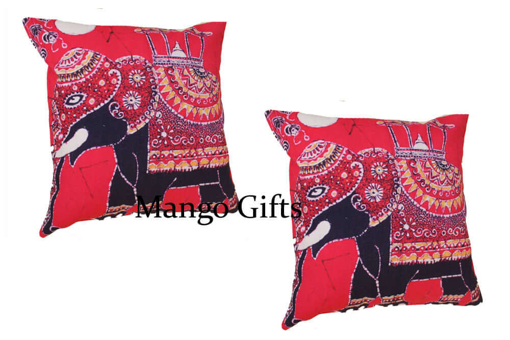 Decrease quantity for Set of 2 – Handmade Elephant Print Cushion Covers 16x16 – Ethnic Digital Printed Cotton Pillow Covers for Sofa, Bed & Home Décor