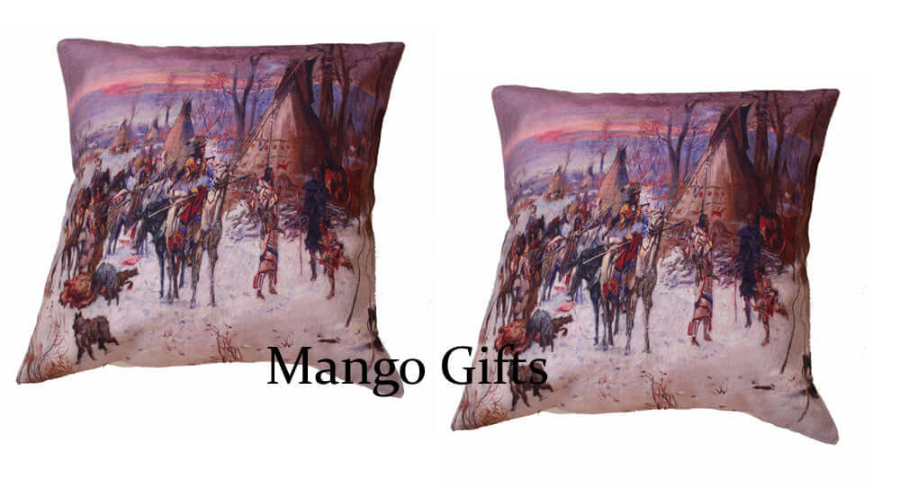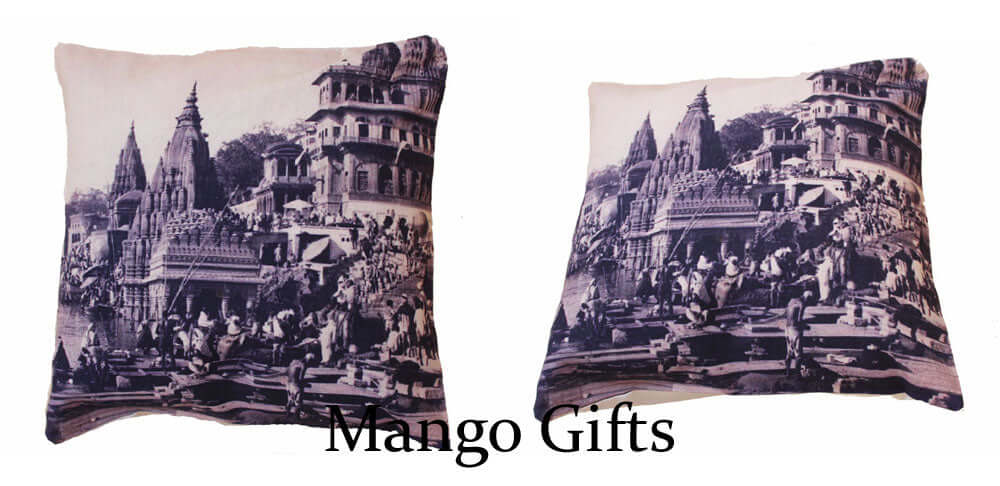 Set of 2 – 16x16 Digital Print Cushion Covers Vintage Indian Market Scene Pillow Covers for Sofa & Living Room