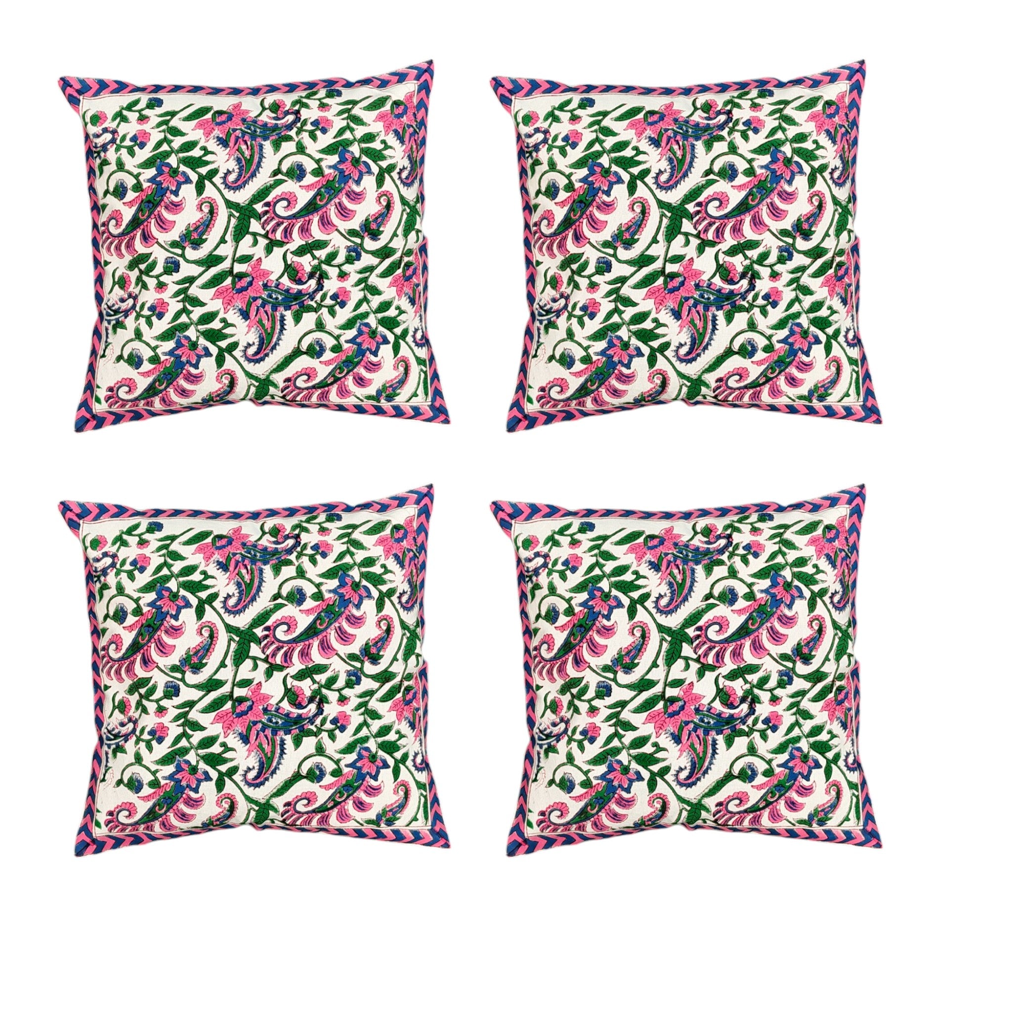 Floral Paisley Digital Printed Cushion Covers, 16x16 Multicolor Decorative Throw Pillow Covers Handmade Sofa & Bed Accent Pillows set of 4.