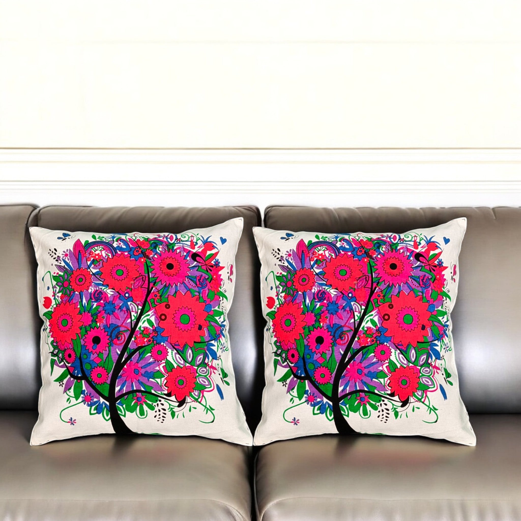 Floral Tree Digital Printed Cushion Covers, 16x16 Multicolor Decorative Throw Pillow Covers Handmade Sofa & Bed Accent Pillows set of 2.