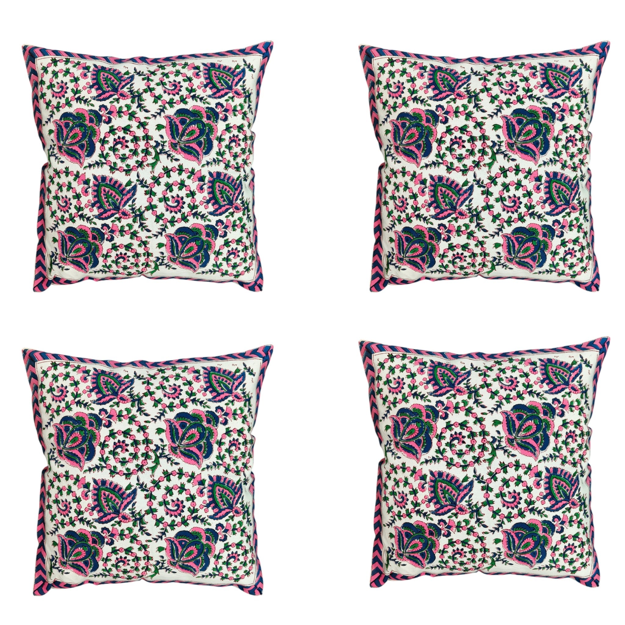 Floral Mughal Digital Printed Cushion Covers, 16x16 Multicolor Decorative Throw Pillow Covers Handmade Sofa & Bed Accent Pillows set of 2.