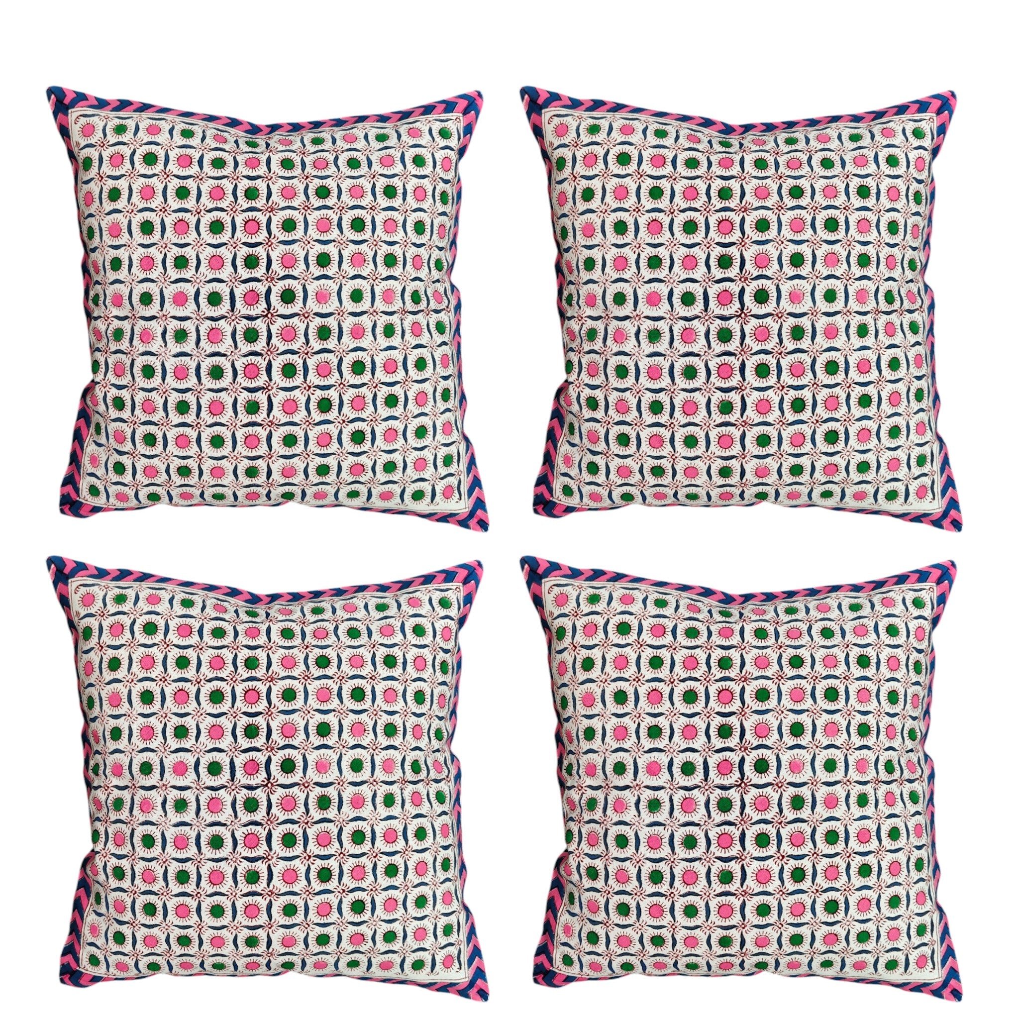 Geometric Floral Digital Printed Cushion Covers, 16x16 Multicolor Decorative Throw Pillow Covers Handmade Sofa & Bed Accent Pillows set of 4.