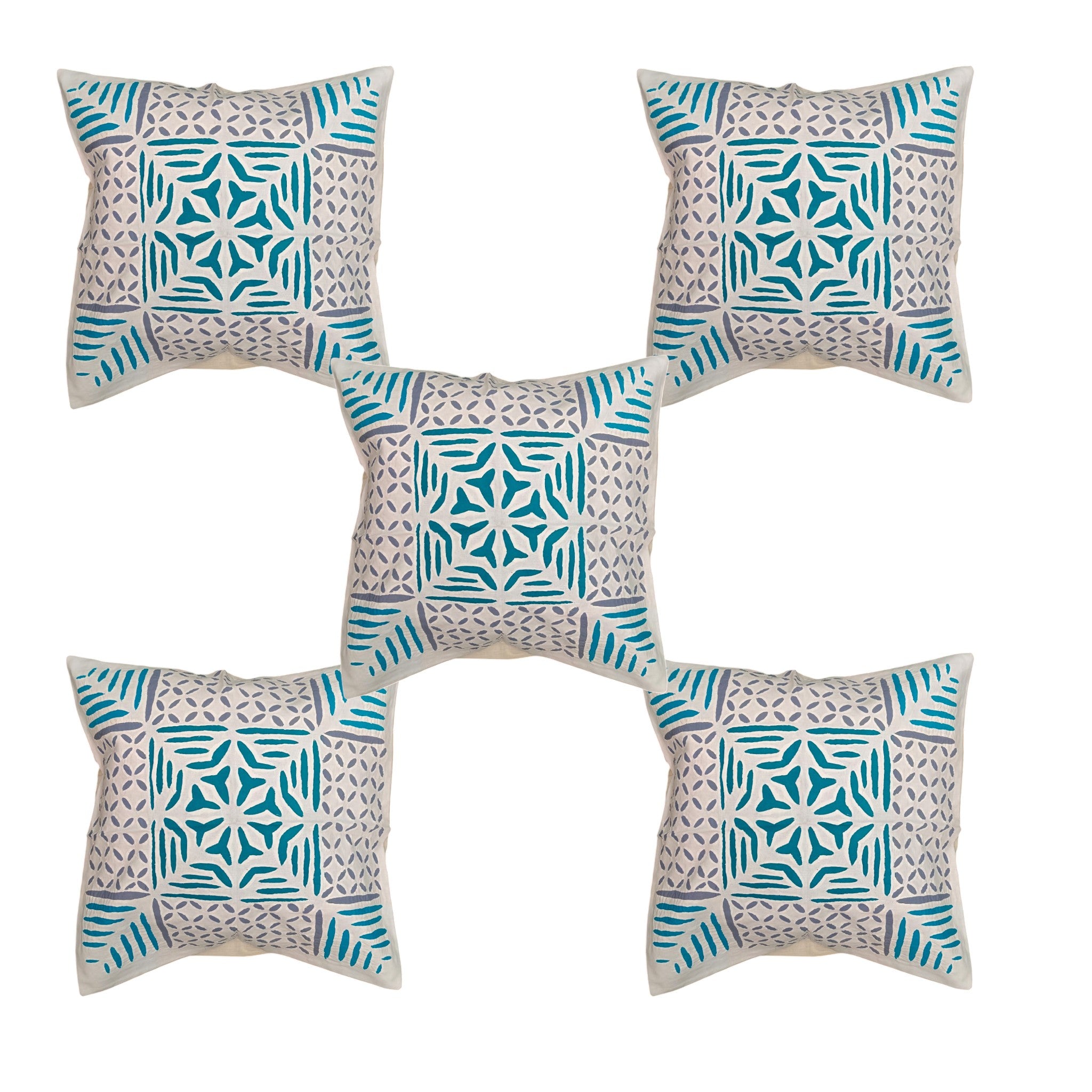geometrical blue & white Digital Printed Cushion Covers, 18x18 Multicolor Decorative Throw Pillow Covers Handmade Sofa & Bed Accent Pillow set of 5.