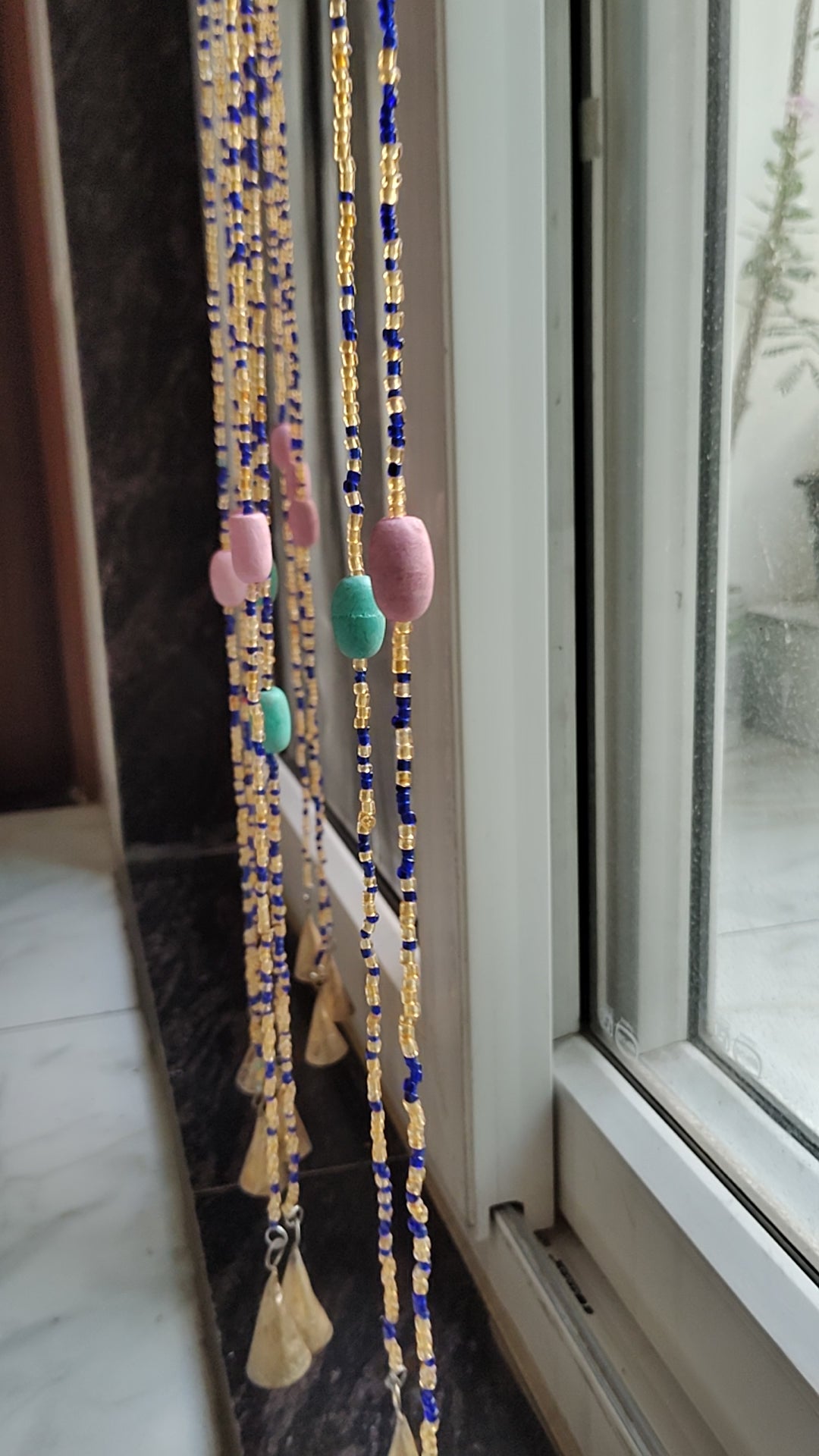 anil kumar This Bohemian Beaded Curtain adds a vibrant, free-spirited touch to any space with its stunning glass beads and gemstones. Perfect for doorways, the bell strings create a soft, soothing jingle, making it both decorative and charming.