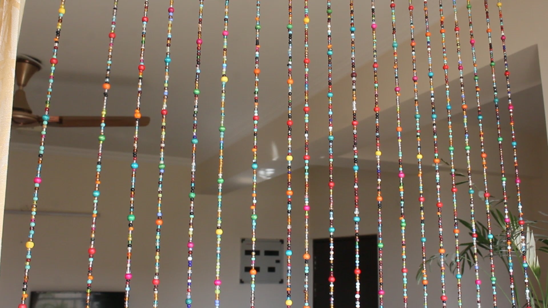 Bohemian Hippy Beaded Doorway Garland Boho Curtain 190 cm Glass Bead Strands with Jingle Bells Colorful Boho Home Decor