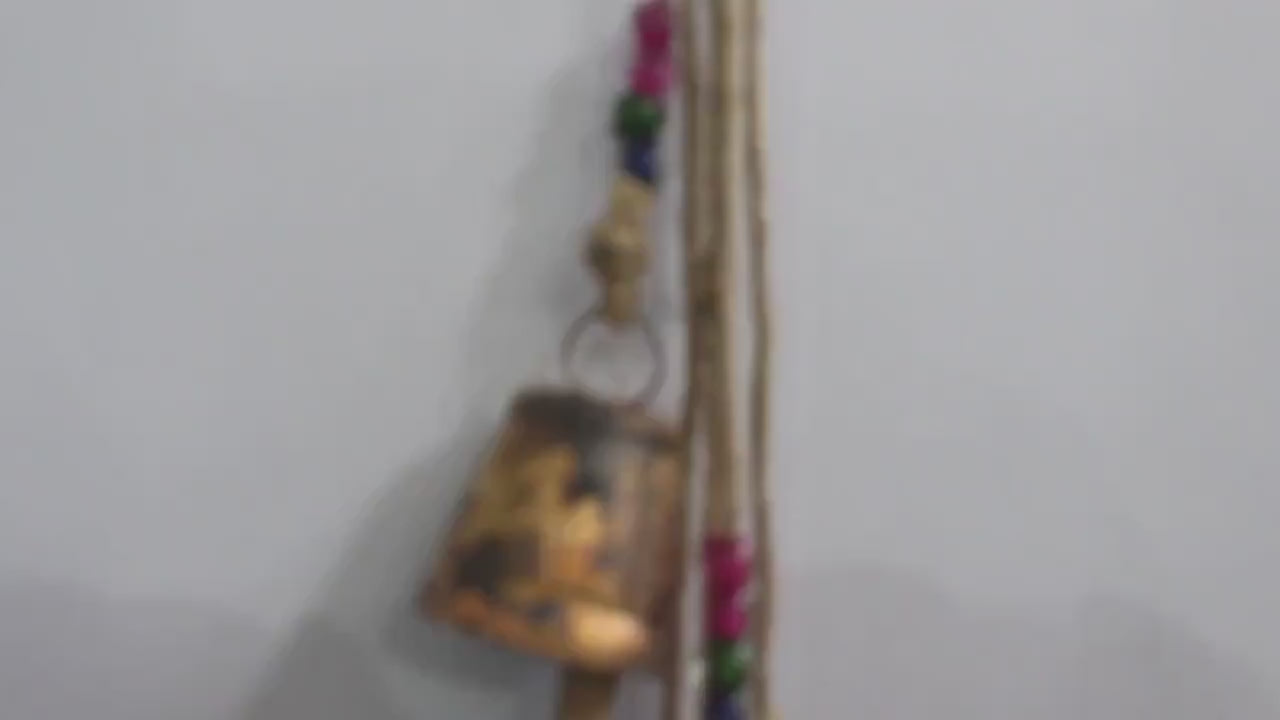 5 Vintage Bells Hanging Chime Mobile String Decoration 72 cm Height Bells on Jute Rope , Shabby Chic Rustic Farmhouse Outdoor Patio Home Garden Decoration